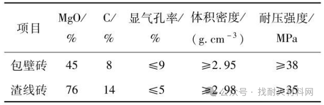 表1 鋼包磚理化指標(biāo)
